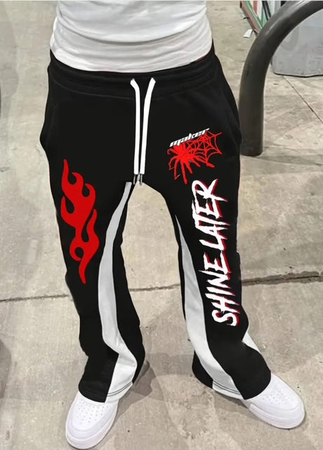 print sweatpants casual polyester knit fabric with slight stretch, regular fit, all season adult athletic pants with elastic waist and drawstring