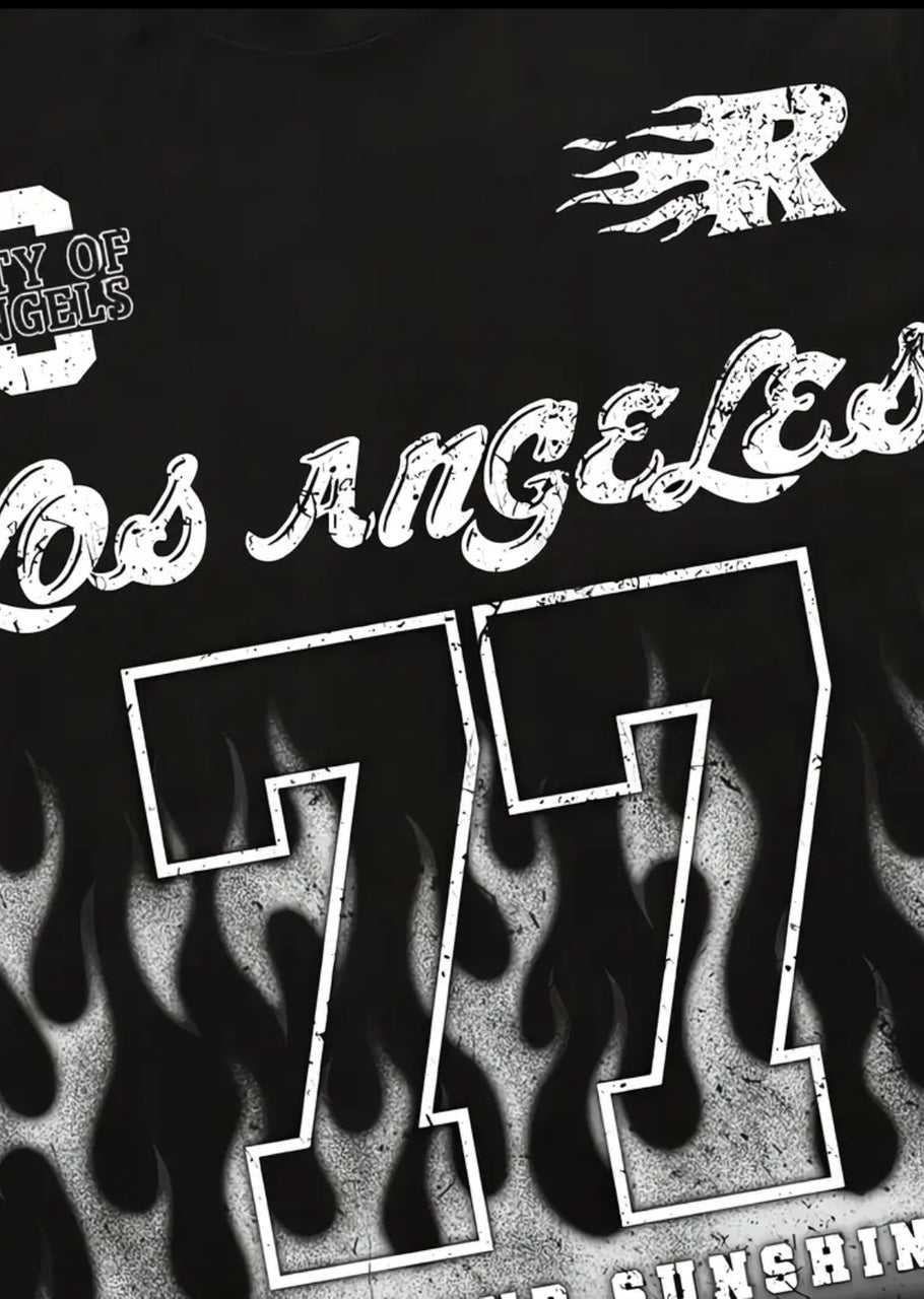 Men's Los Angeles 71 graphic T-shirt black casual summer tee with flame desing, Stars & sun notif