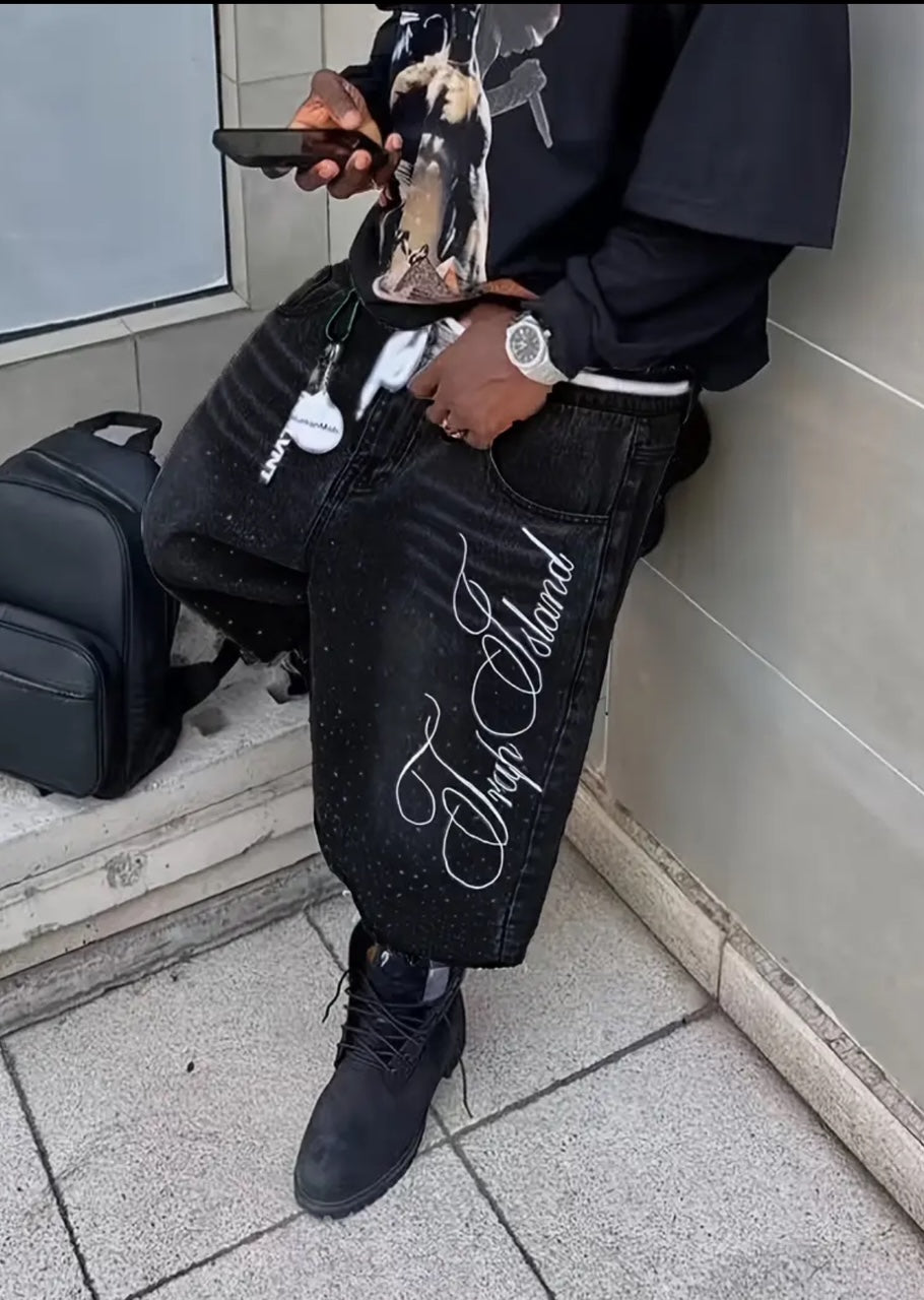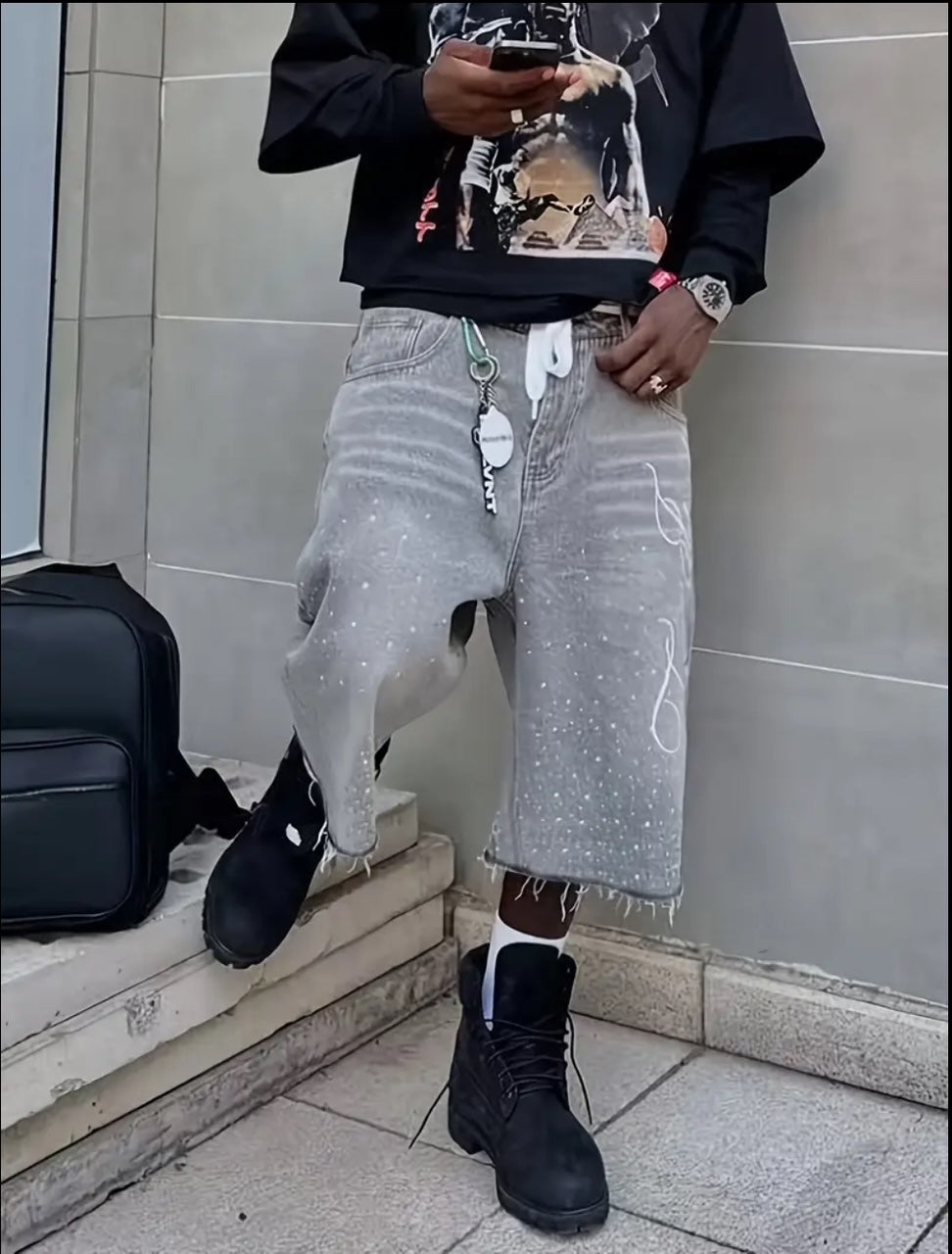Shorts Jeans for men's and women straight wide leg OLD loose casual all-matching croppedd pants